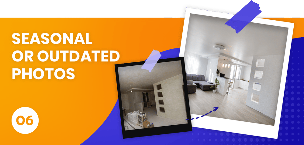 Another mistake sellers often make is featuring pictures taken several months ago that are outdated, maybe in an attempt to save time and effort. But listing photos should always be up-to-date and show the current state of the house and how it would look to a potential buyer in person.