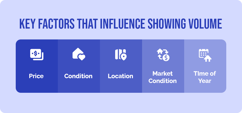 However, you could get just a handful of showings on your home and receive multiple offers. Or, your home could be on the market for weeks or months before it goes under contract. This is because showing volume can vary widely based on a number of factors: price, location, your home’s condition and how desirable it is, market conditions, as well as the time of the year.