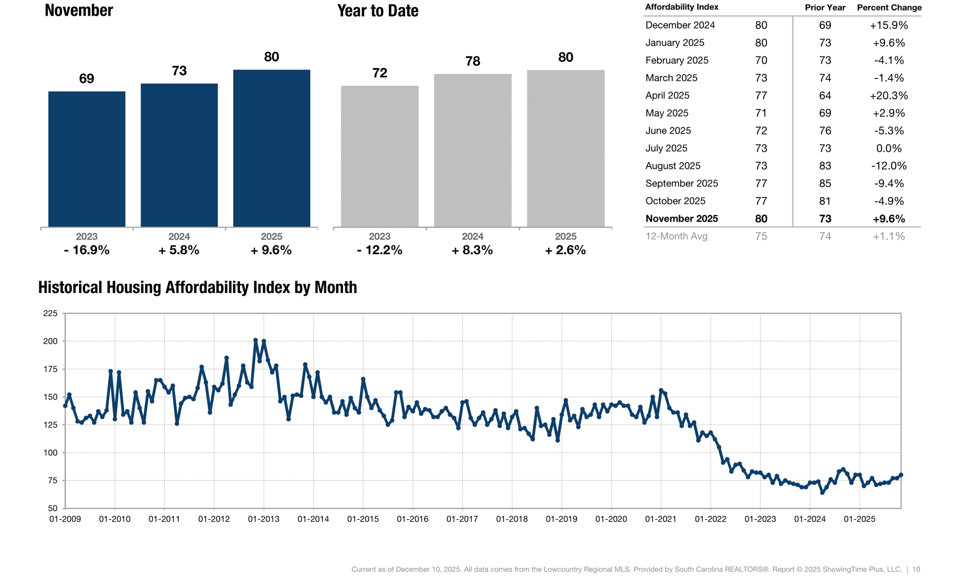 This index measures housing affordability for the region. For example, an index of 120 means the median household income is 120% of what is necessary to qualify for the median-priced home under prevailing interest rates. A higher number means greater affordability.