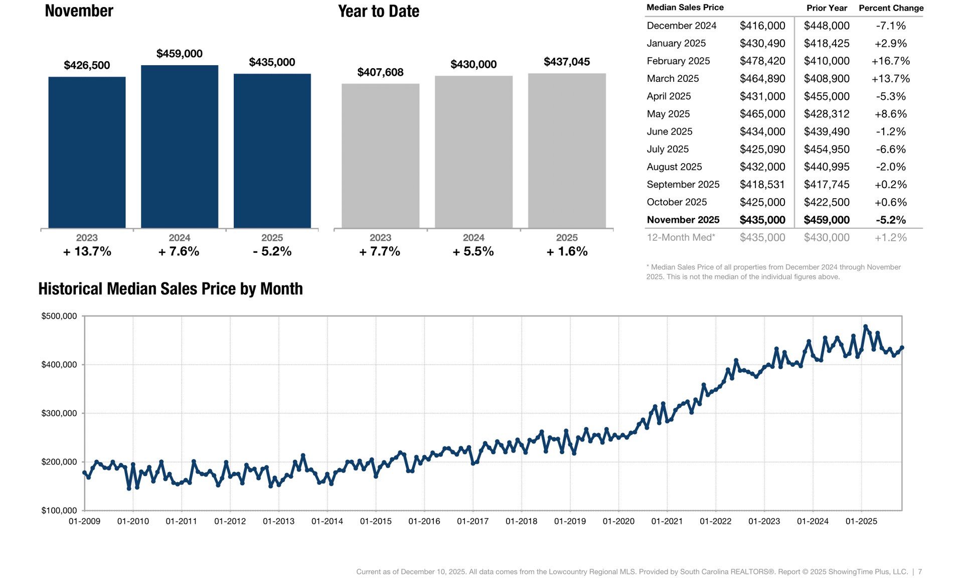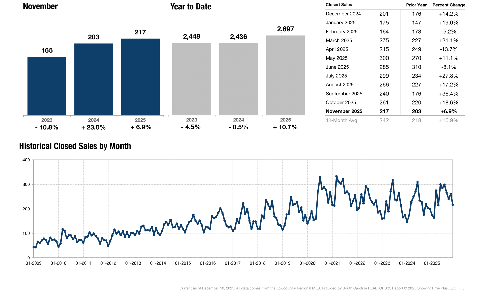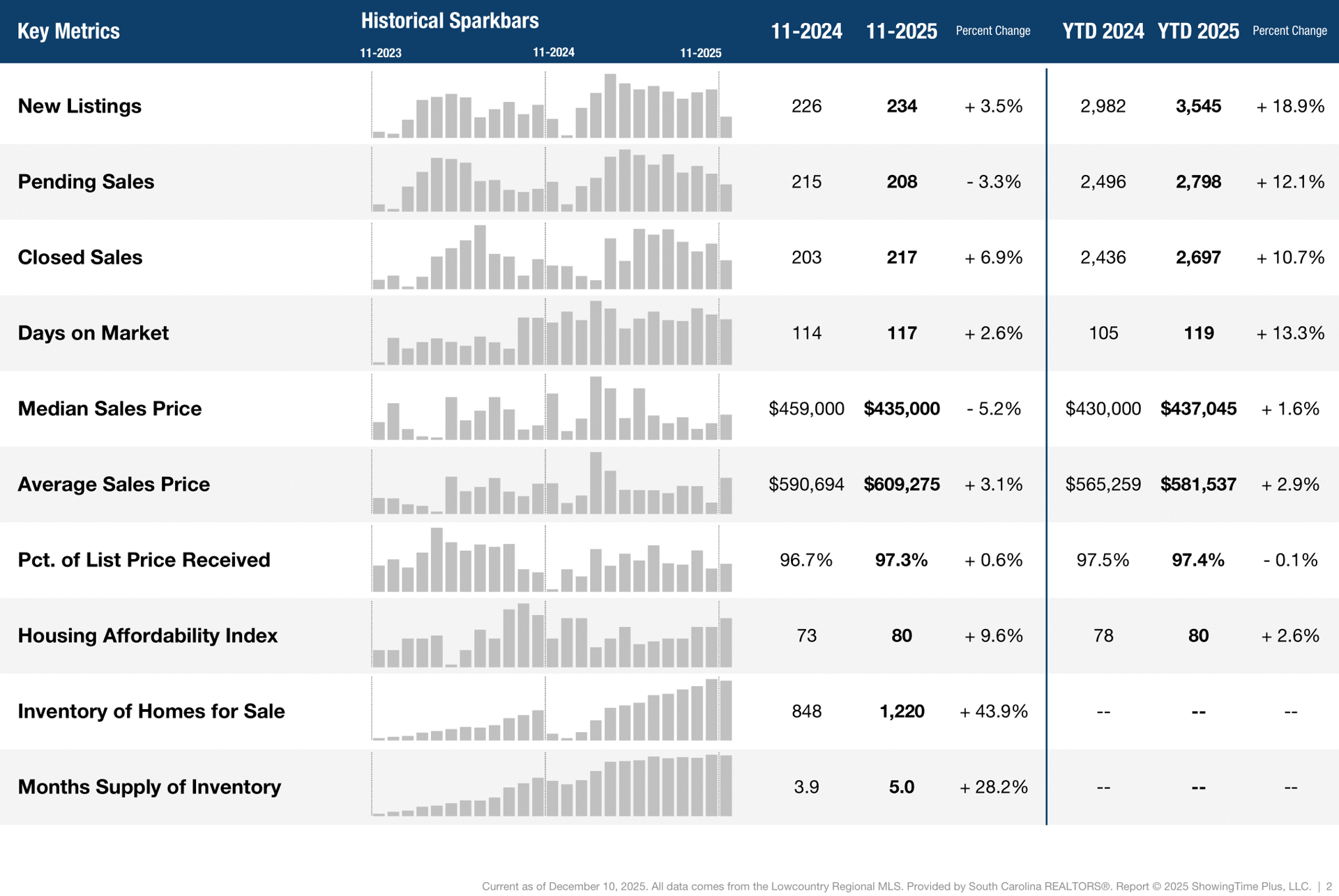 Key market metrics for the current month and year-to-date figures.