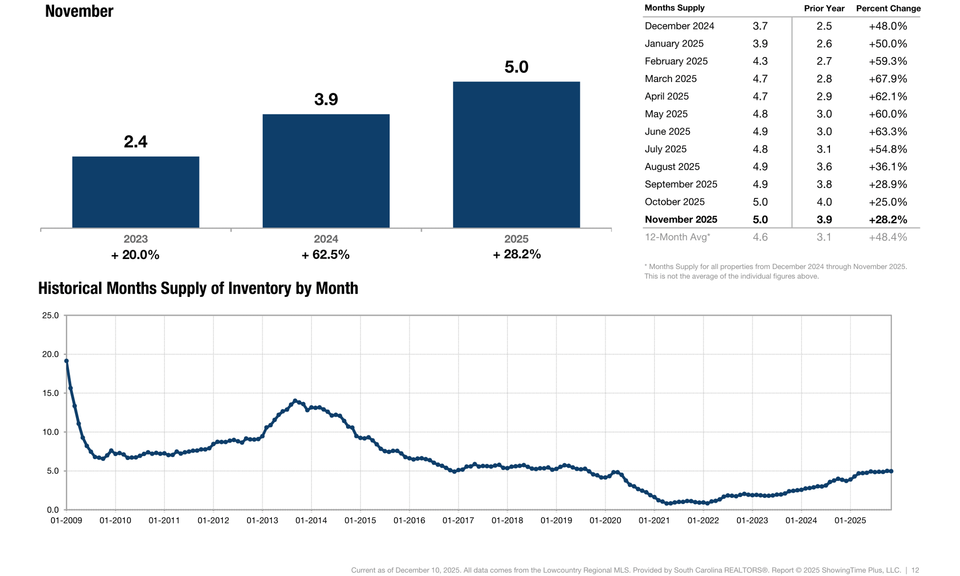 U.S. sales of existing homes rose 1.2% from the previous month to a seasonally adjusted annual rate of 4.10 million, according to the National Association of REALTORS® (NAR), as buyers took advantage of lower mortgage rates this fall. Sales increased in the Midwest and South, held steady in the Northeast, and edged down in the West. Year-over-year, sales were up 1.7%, with gains in the Northeast, Midwest, and South, while the West posted a decline. New Listings were up 3.5 percent to 234. Pending Sales decreased 3.3 percent to 208. Inventory grew 43.9 percent to 1,220 units. Median Sales Price was down 5.2 percent to $435,000. Days on Market increased 2.6 percent to 117 days. Months Supply of Inventory was up 28.2 percent to 5.0 months.