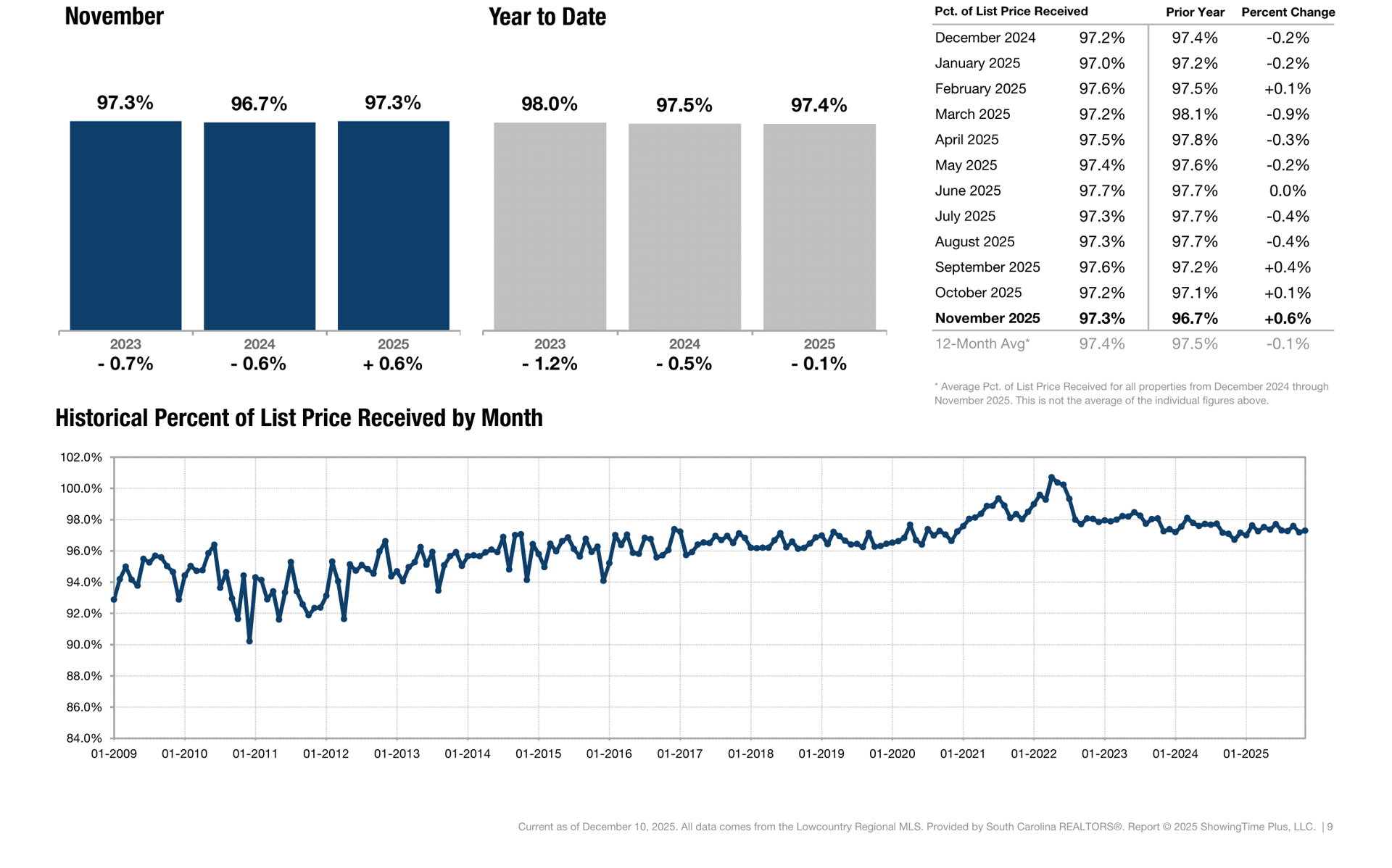 Percentage found when dividing a property’s sales price by its most recent list price, then taking the average for all properties sold in a given month, not accounting for seller concessions.